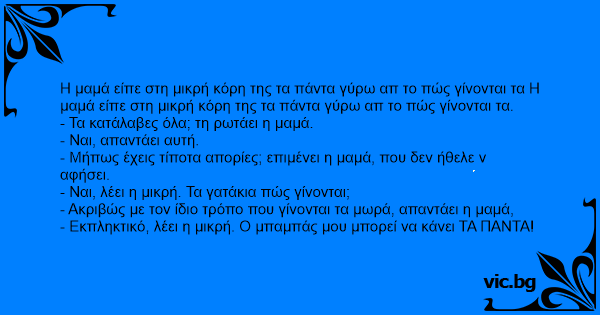 Η μαμά είπε στη μικρή κόρη της τα πάντα γύρω απ το πώς γίνονται τα Η μαμά είπε στη μικρή κόρη της τα πάντα γύρω απ το πώς γίνονται τα.