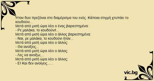 - Σιγά, ρε μαλάκα! Ακόμα δεν χτύπησα το κουδούνι! Πότε μου άνοιξες;