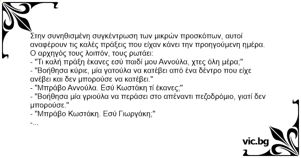 - "Τι καλή πράξη έκανες εσύ παιδί μου Αννούλα, χτες όλη μέρα;"