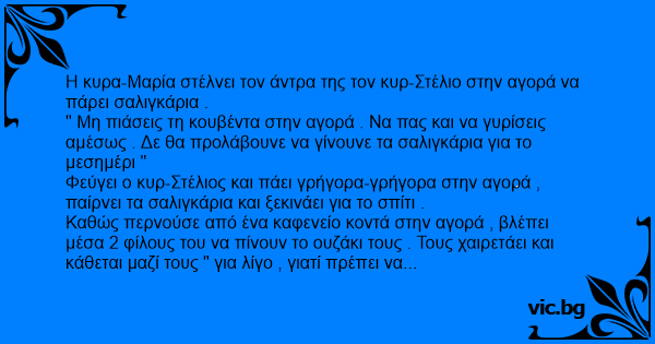 Η κυρα-Μαρία στέλνει τον άντρα της τον κυρ-Στέλιο στην αγορά να πάρει σαλιγκάρια .