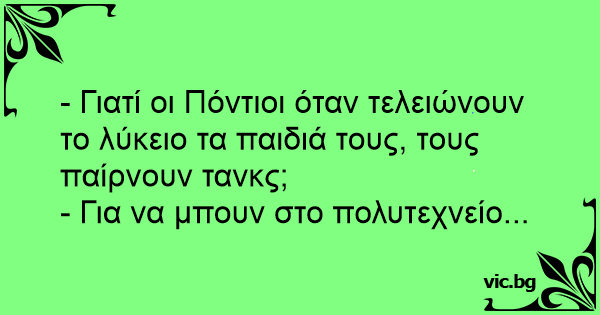 - Γιατί οι Πόντιοι όταν τελειώνουν το λύκειο τα παιδιά τους, τους παίρνουν τανκς;