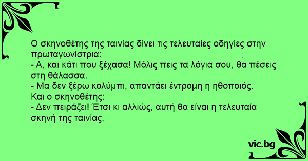 - Δεν πειράζει! Έτσι κι αλλιώς, αυτή θα είναι η τελευταία σκηνή της ταινίας.