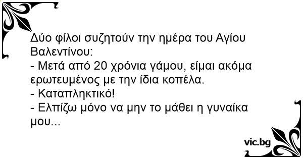- Μετά από 20 χρόνια γάμου, είμαι ακόμα ερωτευμένος με την ίδια κοπέλα.