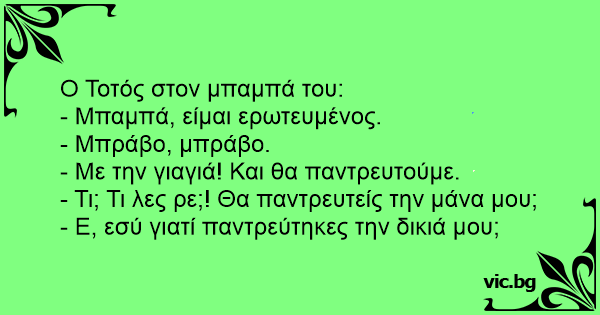 - Τι; Τι λες ρε;! Θα παντρευτείς την μάνα μου;