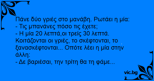 Κοιτάζονται οι γριές, το σκέφτονται, το ξανασκέφτονται... Οπότε λέει η μία στην άλλη: