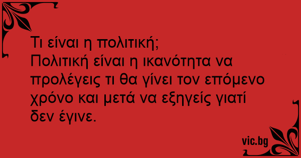 Πολιτική είναι η ικανότητα να προλέγεις τι θα γίνει τον επόμενο χρόνο και μετά να εξηγείς γιατί δεν έγινε.