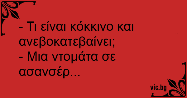 - Τι είναι κόκκινο και ανεβοκατεβαίνει;