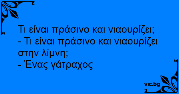 - Τι είναι πράσινο και νιαουρίζει στην λίμνη;