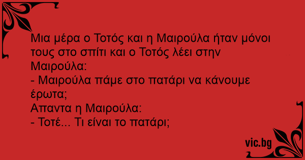 Μια μέρα ο Τοτός και η Μαιρούλα ήταν μόνοι τους στο σπίτι και ο Τοτός λέει στην Μαιρούλα: