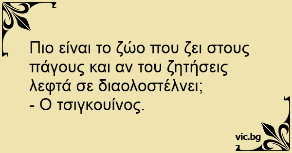 Πιο είναι το ζώο που ζει στους πάγους και αν του ζητήσεις λεφτά σε διαολοστέλνει; - Ο τσιγκουίνος.
