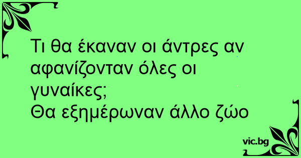 Τι θα έκαναν οι άντρες αν αφανίζονταν όλες οι γυναίκες;Θα εξημέρωναν άλλο ζώο 1 0 0 Πώς λέγεται ανέκδοτα