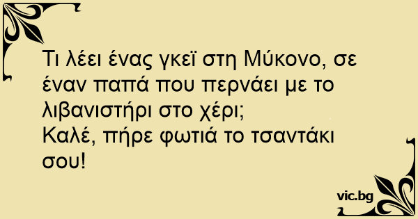 Τι λέει ένας γκεϊ στη Μύκονο, σε έναν παπά που περνάει με το λιβανιστήρι στο χέρι;