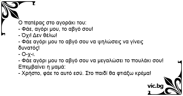 - Φάε αγόρι μου το αβγό σου να ψηλώσεις να γίνεις δυνατός!