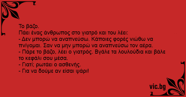 - Πάρε το βάζο, λέει ο γιατρός. Βγάλε τα λουλούδια και βάλε το κεφάλι σου μέσα.