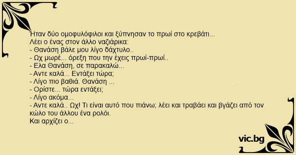 Ήταν δύο ομοφυλόφιλοι και ξύπνησαν το πρωί στο κρεβάτι...
