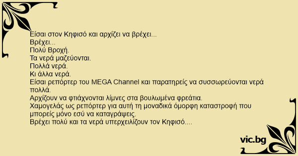 Είσαι ρεπόρτερ του MEGA Channel και παρατηρείς να συσσωρεύονται νερά πολλά.