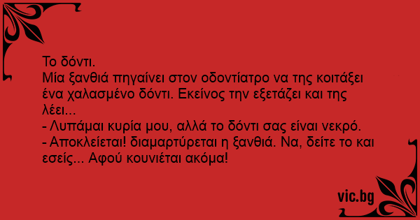 - Λυπάμαι κυρία μου, αλλά το δόντι σας είναι νεκρό.