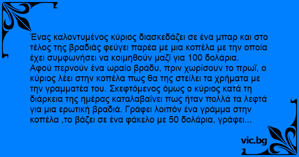 Το άλλο πρωϊ φτάνει στο γραφείο του κυρίου ένα γράμμα που περιέχει 50 δολάρια και αναφέρει τα εξής: