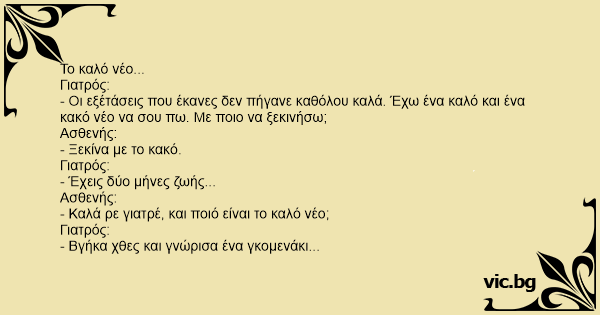 - Καλά ρε γιατρέ, και ποιό είναι το καλό νέο;