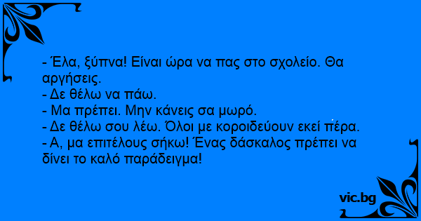 - Έλα, ξύπνα! Είναι ώρα να πας στο σχολείο. Θα αργήσεις.