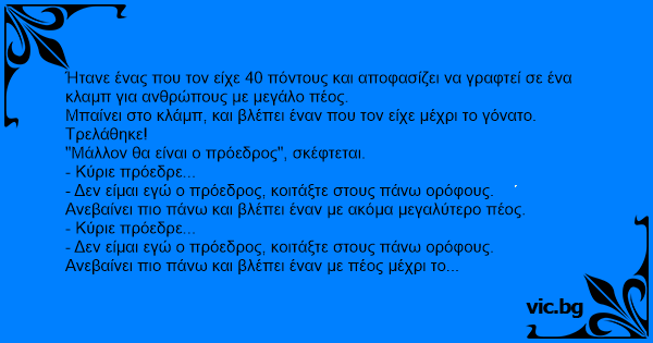 Ήτανε ένας που τον είχε 40 πόντους και αποφασίζει να γραφτεί σε ένα κλαμπ για ανθρώπους με μεγάλο πέος.