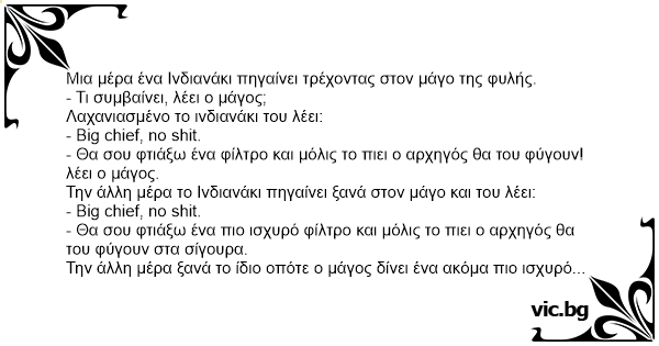 Μια μέρα ένα Ινδιανάκι πηγαίνει τρέχοντας στον μάγο της φυλής.