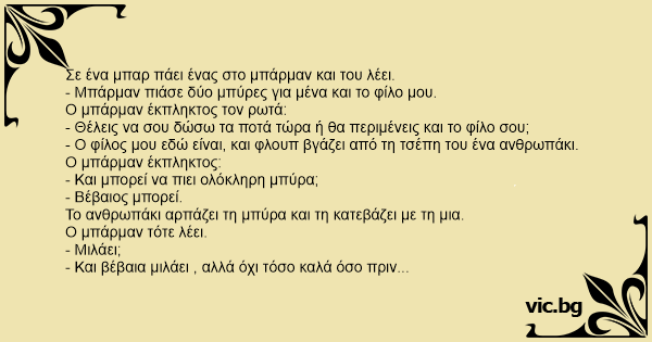 Ο μπάρμαν έκπληκτος τον ρωτά: