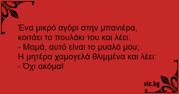 Den lille fyr sidder i badekaret og mærker forsigtigt på sine testikler. "Mor, er det min hjerne?" "Ikke endnu, min dreng, ikke endnu .!"
