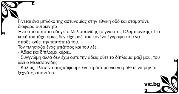- Συγγνώμη αλλά δεν έχω ούτε την άδεια ούτε το δίπλωμα μαζί μου, του λέει ο Μελισσανίδης.