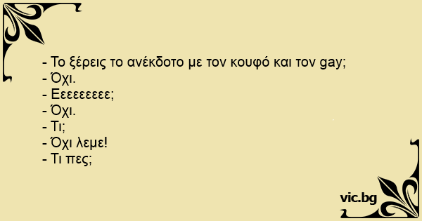 - Το ξέρεις το ανέκδοτο με τον κουφό και τον gаy;