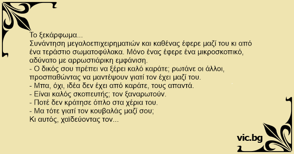 - Μπα, όχι, ιδέα δεν έχει από καράτε, τους απαντά.