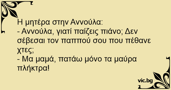 - Αννούλα, γιατί παίζεις πιάνο; Δεν σέβεσαι τον παππού σου που πέθανε χτες;