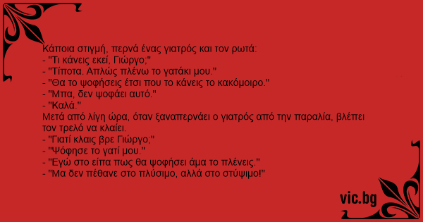 - "Θα το ψοφήσεις έτσι που το κάνεις το κακόμοιρο."