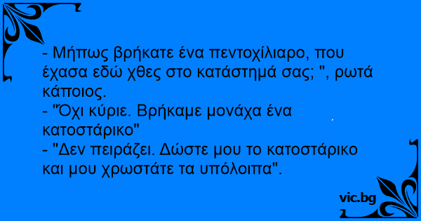 - Μήπως βρήκατε ένα πεντοχίλιαρο, που έχασα εδώ χθες στο κατάστημά σας; ", ρωτά κάποιος.