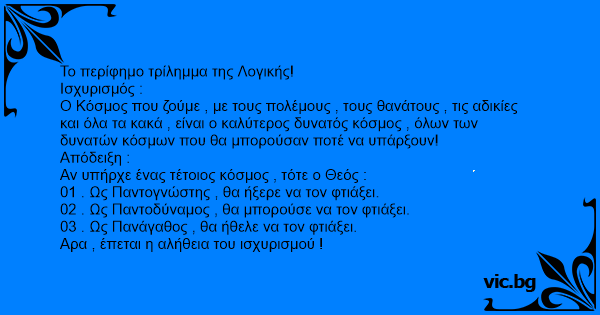 Αν υπήρχε ένας τέτοιος κόσμος , τότε ο Θεός :