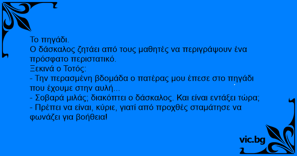 - Σοβαρά μιλάς; διακόπτει ο δάσκαλος. Και είναι εντάξει τώρα;