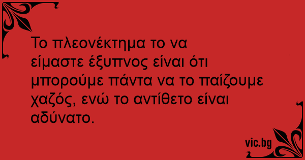 Το πλεονέκτημα το να είμαστε έξυπνος είναι ότι μπορούμε πάντα να το παίζουμε χαζός, ενώ το αντίθετο είναι αδύνατο.