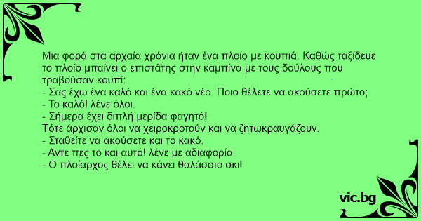- Σας έχω ένα καλό και ένα κακό νέο. Ποιο θέλετε να ακούσετε πρώτο;