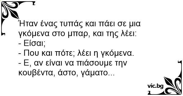 Ήταν ένας τυπάς και πάει σε μια γκόμενα στο μπαρ, και της λέει: