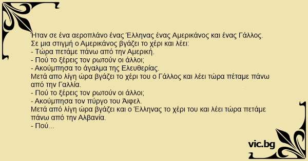 Ήταν σε ένα αεροπλάνο ένας Έλληνας ένας Αμερικάνος και ένας Γάλλος.