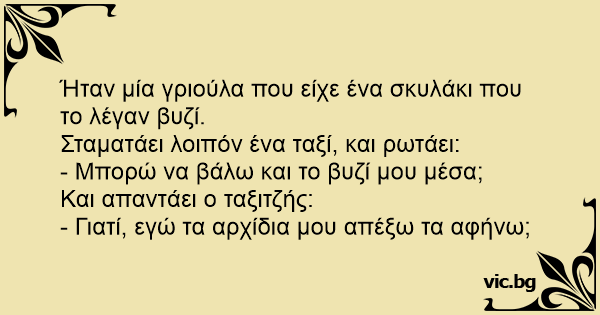 Ήταν μία γριούλα που είχε ένα σκυλάκι που το λέγαν βυζί.