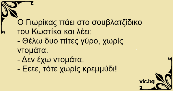 Ο Γιωρίκας πάει στο σουβλατζίδικο του Κωστίκα και λέει: