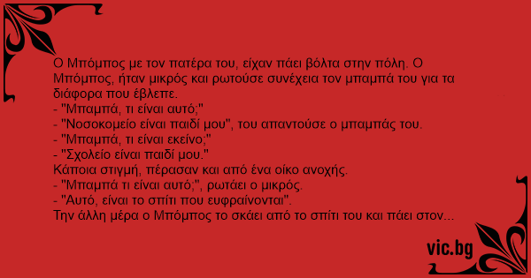- "Νοσοκομείο είναι παιδί μου", του απαντούσε ο μπαμπάς του.