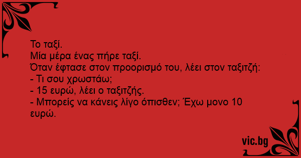 Όταν έφτασε στον προορισμό του, λέει στον ταξιτζή: