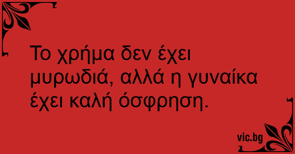 Το χρήμα δεν έχει μυρωδιά, αλλά η γυναίκα έχει καλή όσφρηση.
