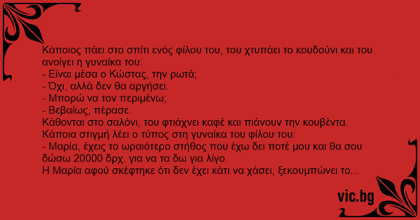 Φεύγει ο τύπος και μετά από μισή ώρα έρχεται ο Κώστας και η γυναίκα του, του λέει: