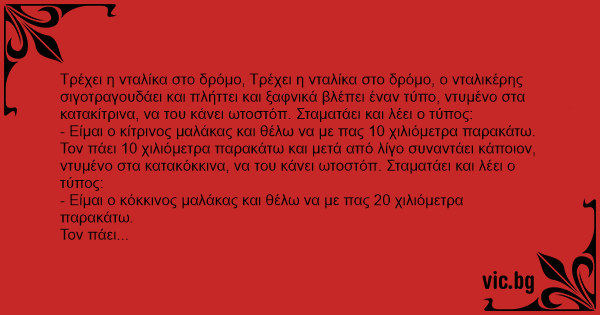 - Είμαι ο κόκκινος μαλάκας και θέλω να με πας 20 χιλιόμετρα παρακάτω.