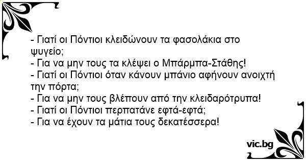 - Γιατί οι Πόντιοι όταν κάνουν μπάνιο αφήνουν ανοιχτή την πόρτα;
