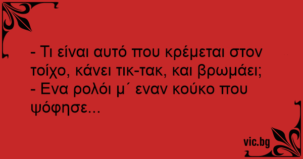 - Τι είναι αυτό που κρέμεται στον τοίχο, κάνει τικ-τακ, και βρωμάει;