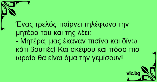 Ένας τρελός παίρνει τηλέφωνο την μητέρα του και της λέει: